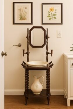This is a vintage pitcher and wash bowl set. We had this exact set up growing up along with other sets. My mother loved these sets. No one could touch them except to Windex them. LOL. How people used them can be shown in those classic films.